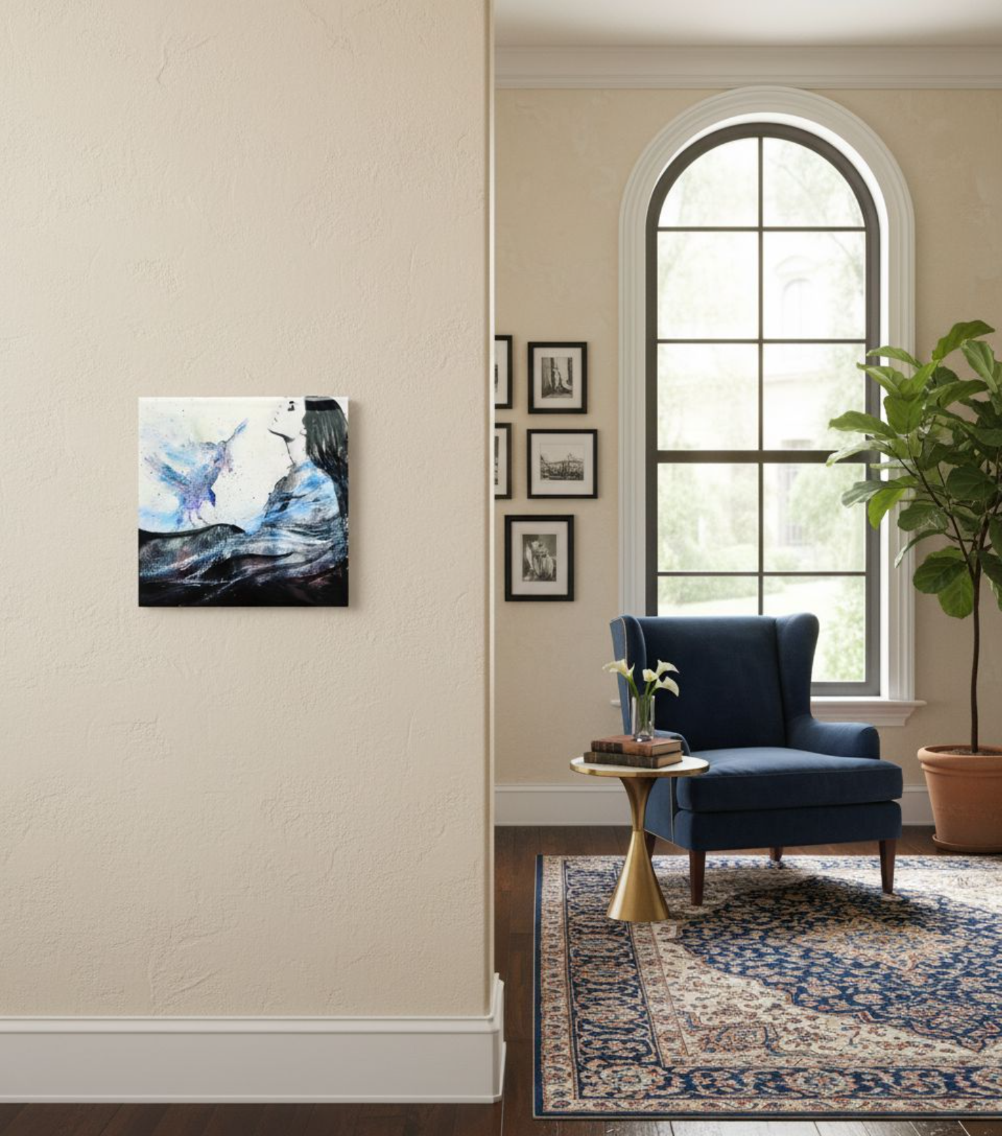 This is a one-of-a-kind painting that blends portrait, poetry, and the movement of water — a reflection of resilience, depth, and emotion. Prints are not available; only this original exists